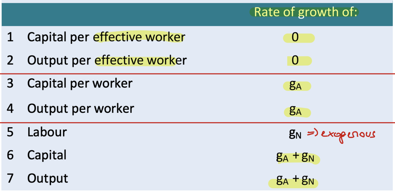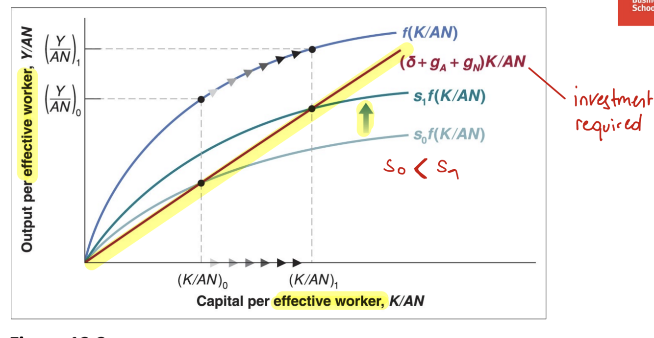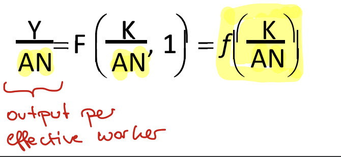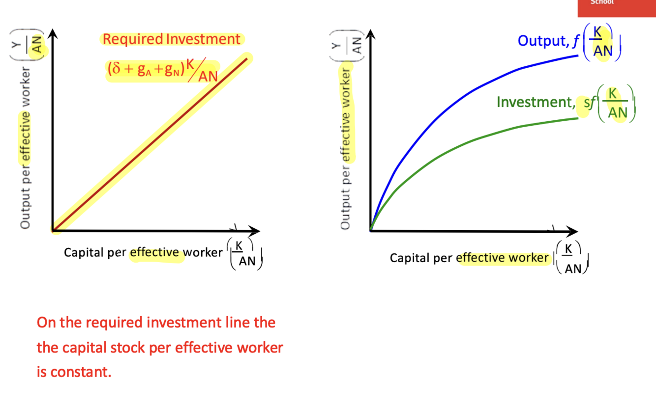 -For a given saving rate, this will determine a steady state level of capital per effective worker and that will then determine output per effective worker.