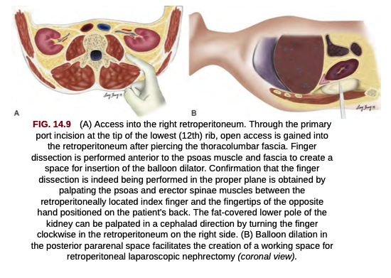 Steps for retroperitoneal access lap nephrec