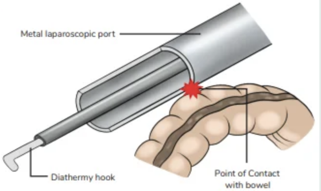 Classic example = First electrode is active instrument, insulator between, then metal trocar around