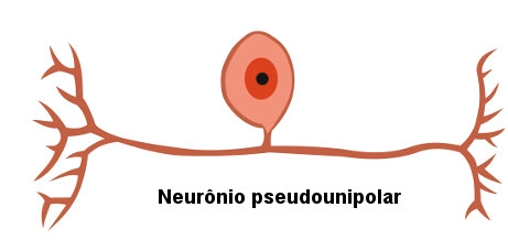 De acordo com a classificação morfológica, como é a estrutura de um neurônio pseudounipolar.