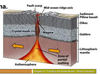 mid-ocean ridges - mountain/ volcano ranges made by divergent plate boundaries, rising magma to make crust