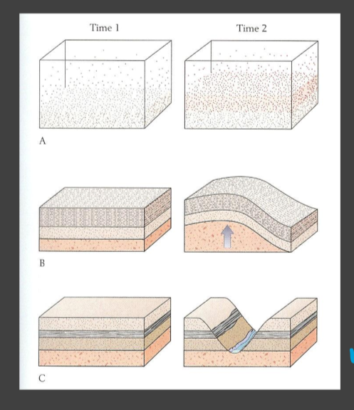 - sediments are deposited in horizontal layers and any deviations from that happened AFTER the beds were laid down
