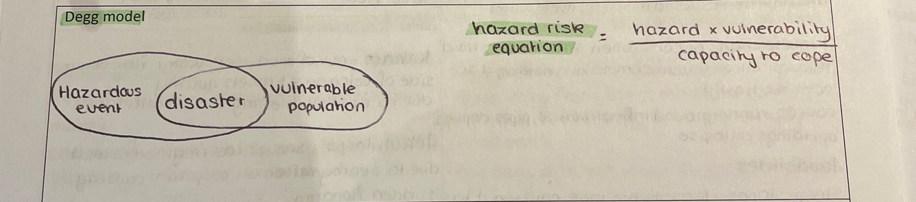 Hazard risk equation= hazard x vulnerability divided by capacity to cope