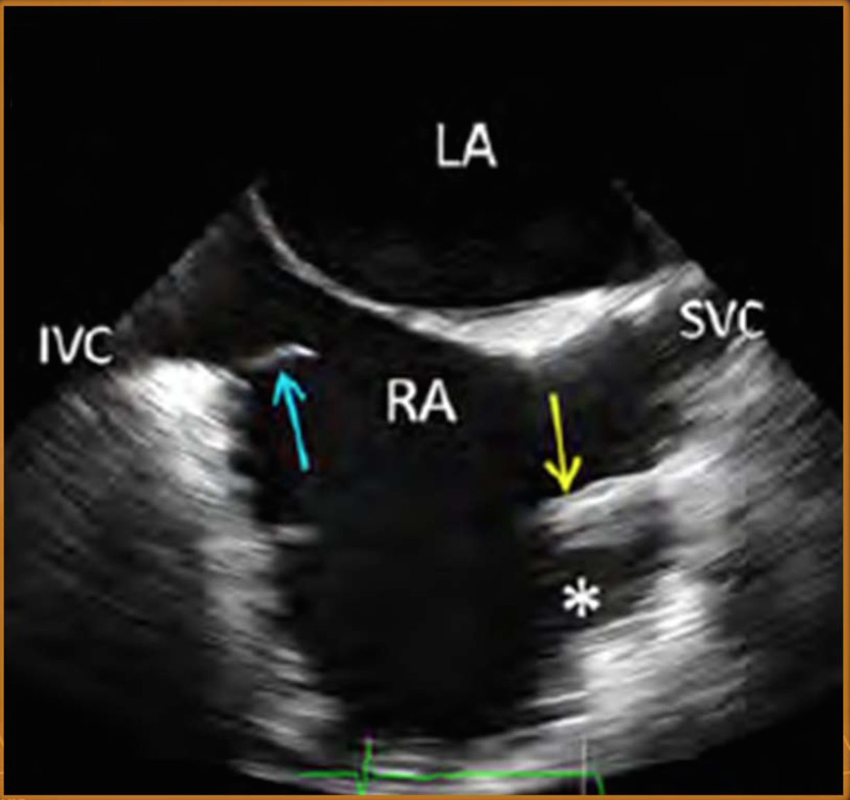 blue = eustachian valve (large = chiari network), yellow = crista terminalis