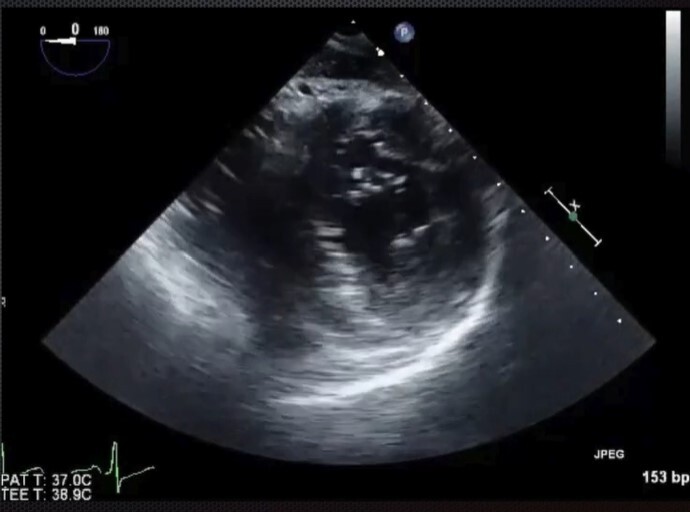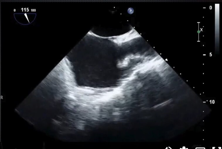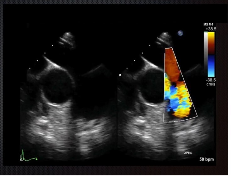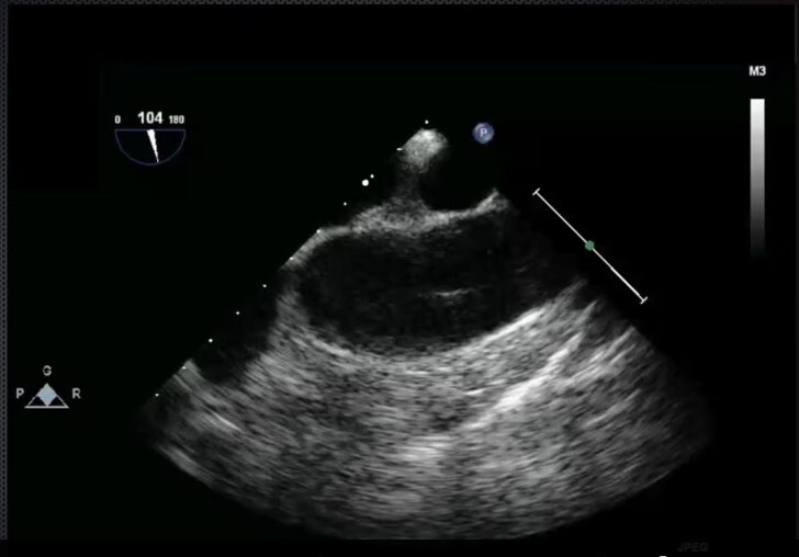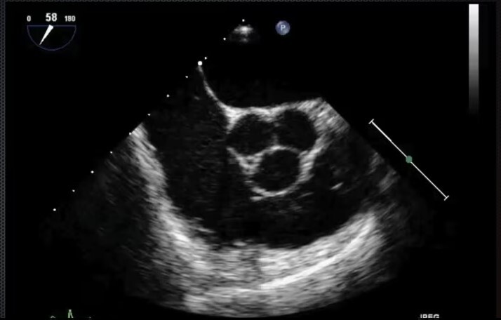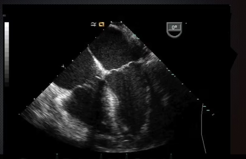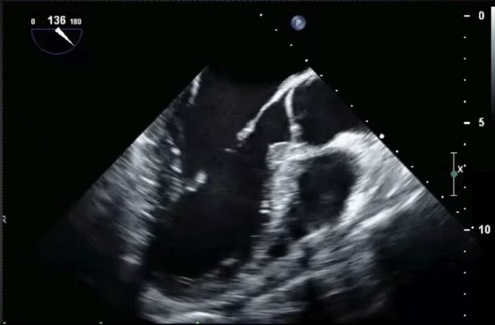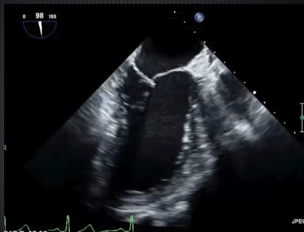 Mid-Esophageal 2 chamber view. Multiplane to between 80-100 degrees.