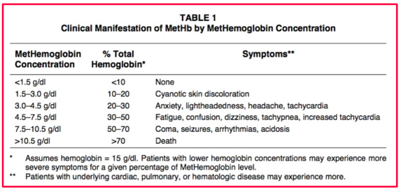 signs of methemoglobinemia