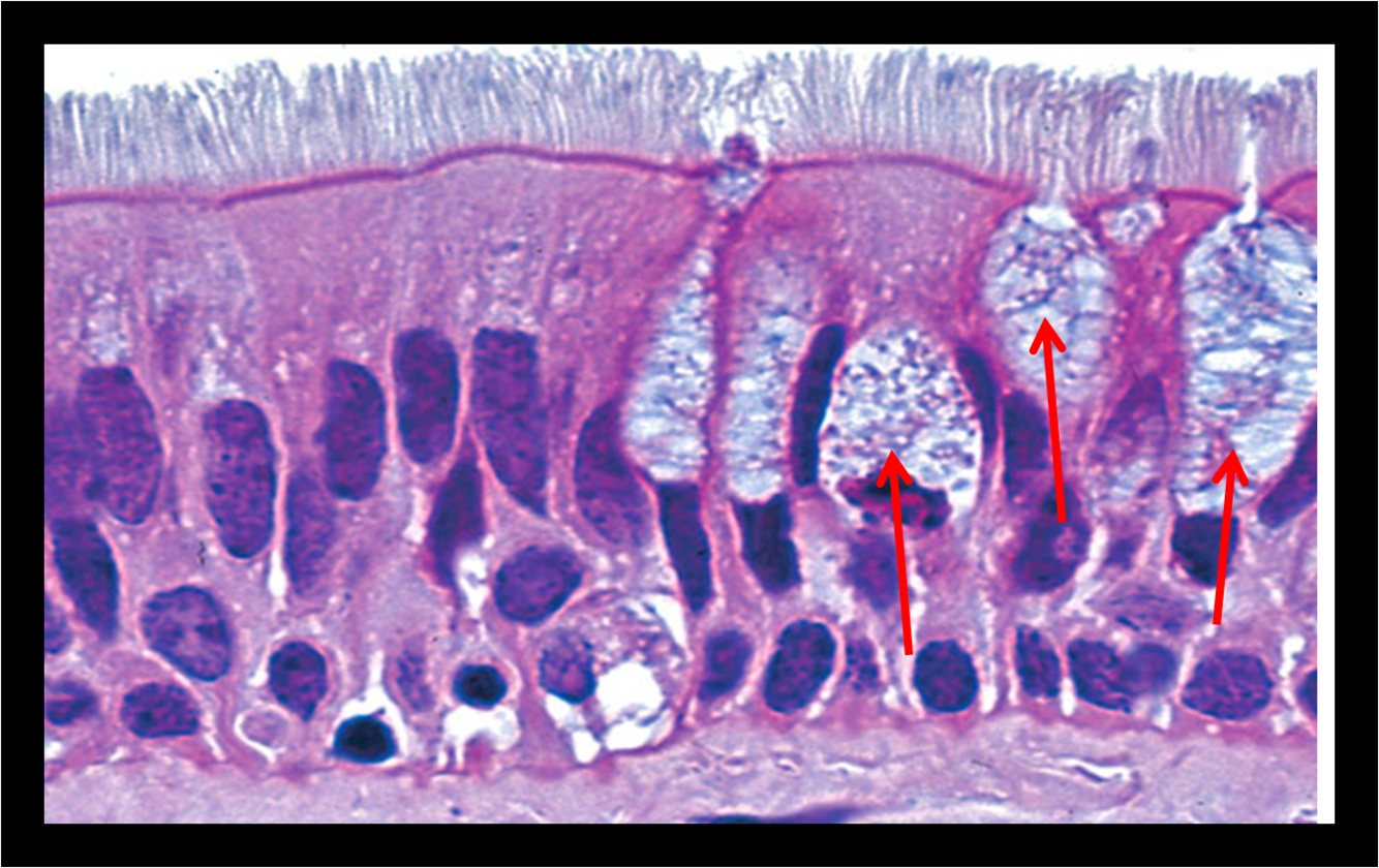 (nucleus, basement membrane, goblet cells)