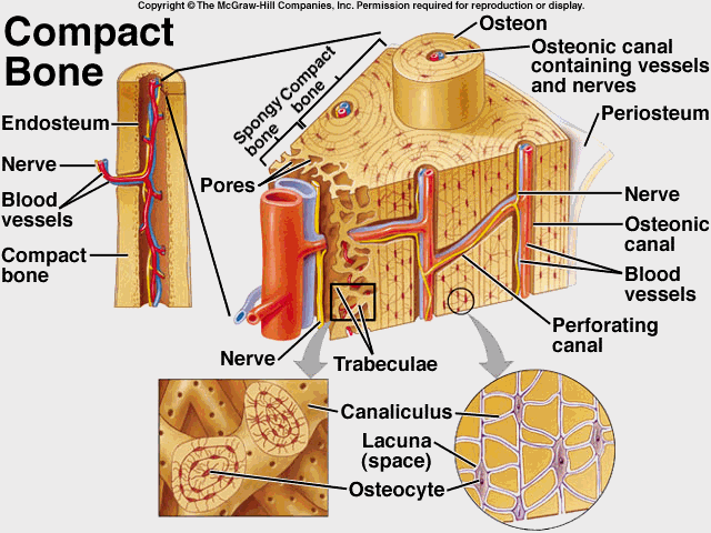 Osteon, Haversian canal, Osteocytes in lacuna, volkman’s (perforating) canal, lamellae, canaliculi