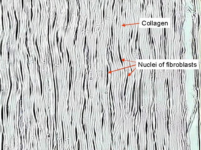 (Tendons, most ligaments, aponeuroses)