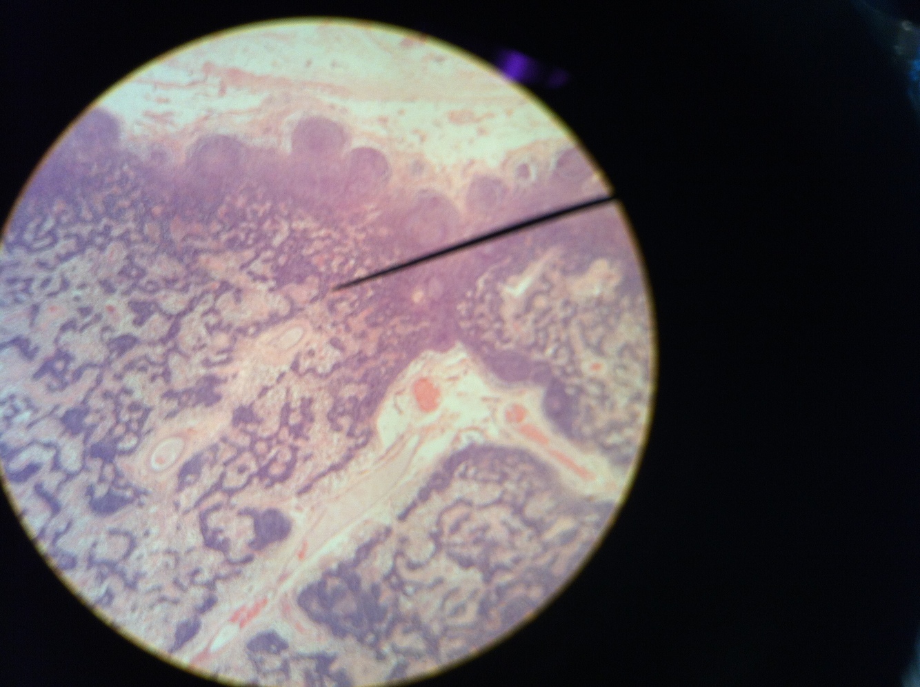 (lumen, basement membrane, nuclei)