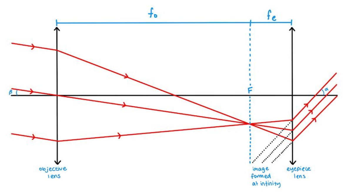 Describe the ray diagram for a refracting telescope in normal adjustment
