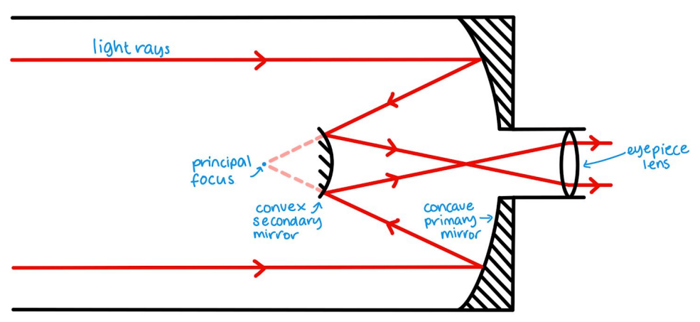 Describe the Cassegrain Reflecting Telescope Ray Diagram