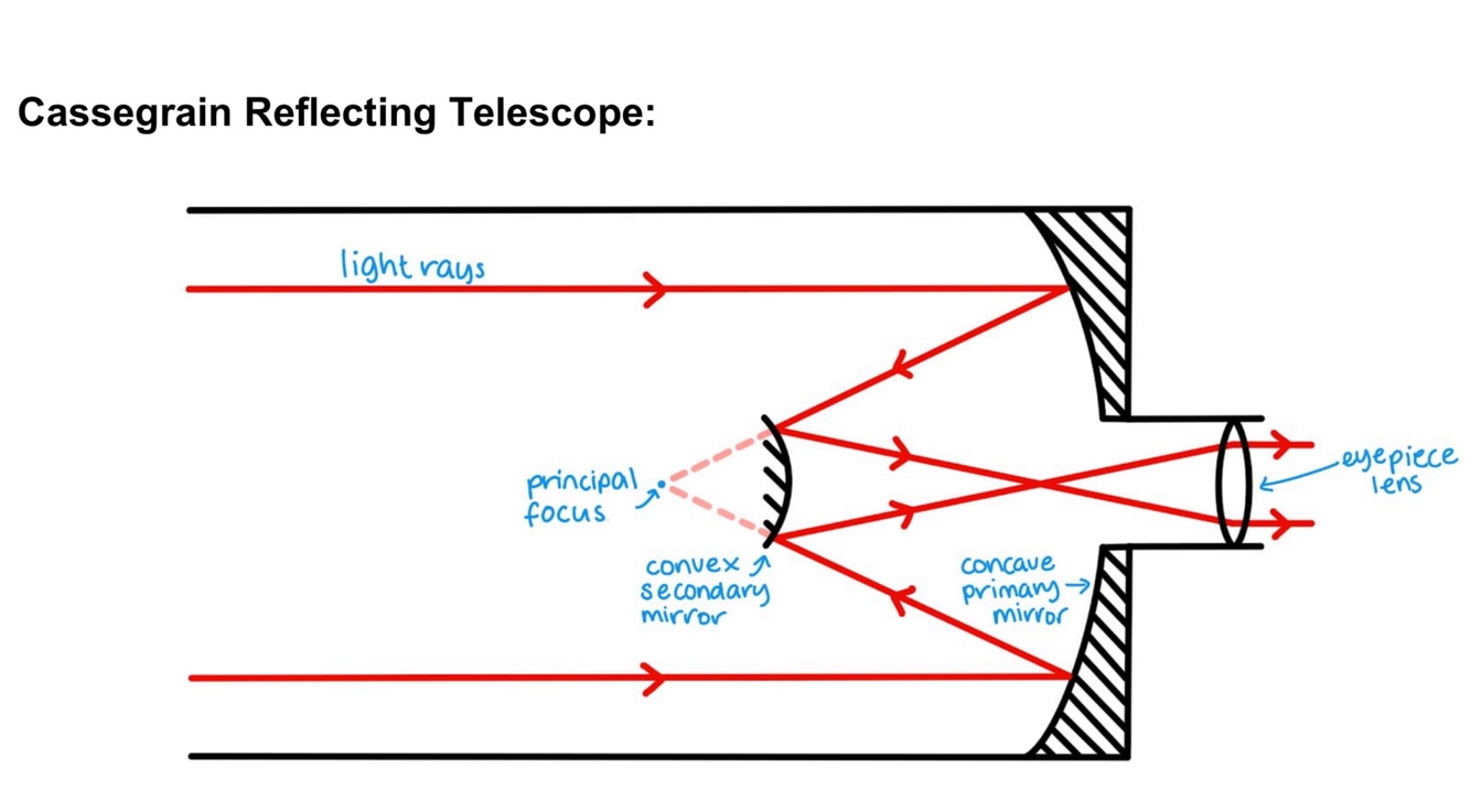 Convex mirror allows Cassegrain to be shorter than Newtonian