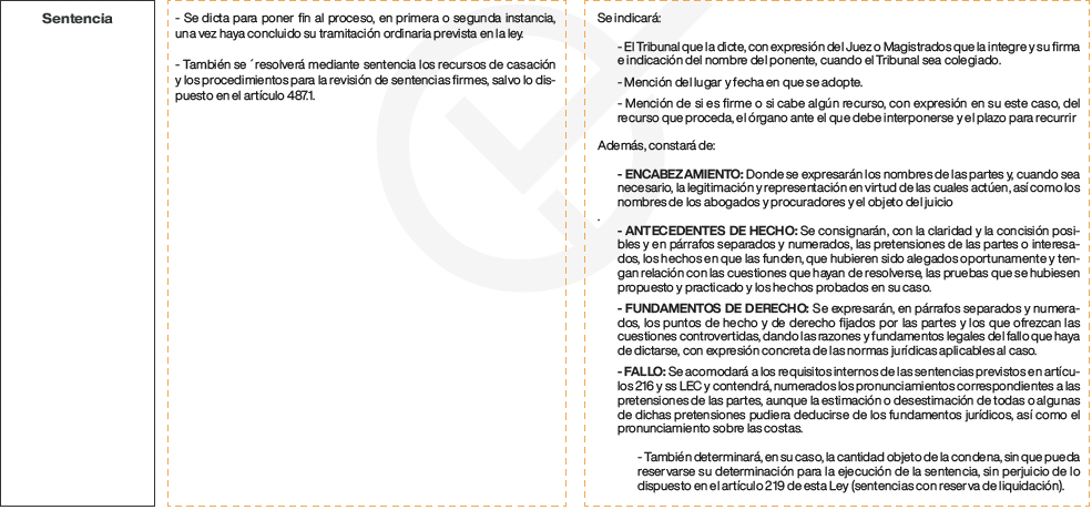 Las sentencias en el proceso civil. Indique brevemente los supuestos en que han de dictarse y la estructura de las mismas.