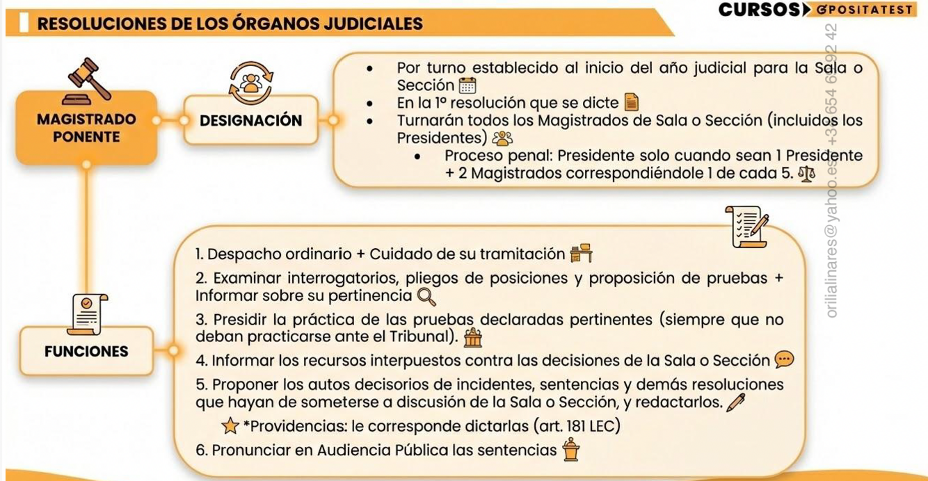 Designación y funciones del Magistrado ponente (ARTS. 203, 204 Y 205 LOPJ Y ART. 146 LECRIM).