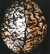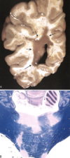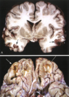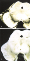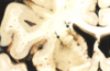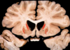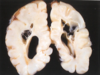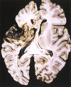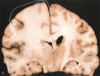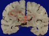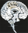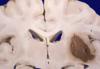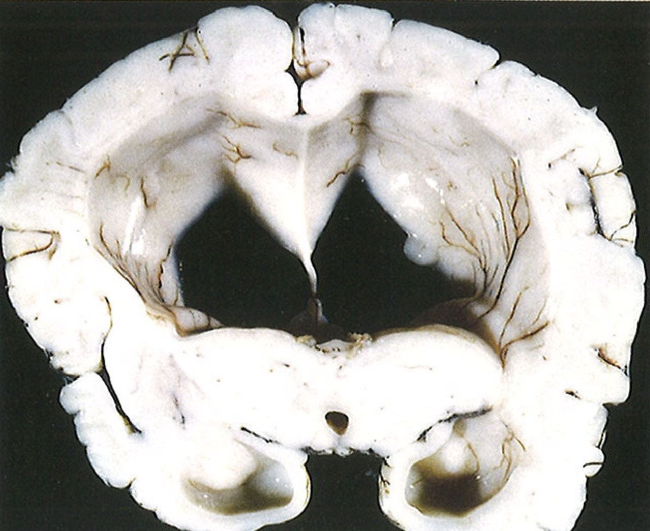 Figura 28.2 Hidrocefalia. Ventrículos laterales dilatados observados en corte frontal a través de la región centraI del tálamo.