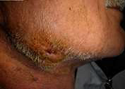 o Inflamación indolora e indurada que progresa a múltiples abscesos o fístulas.