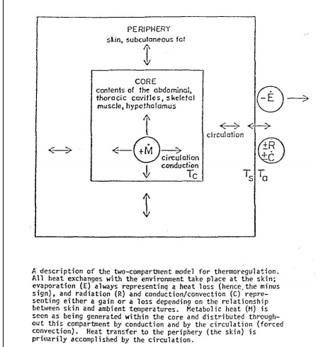 The periphery is at Tc at its inner boundary and Ts (the skin temperature) at its outer boundary. Heat flows between the core to skin driven by the temperature gradient Ts – Tc