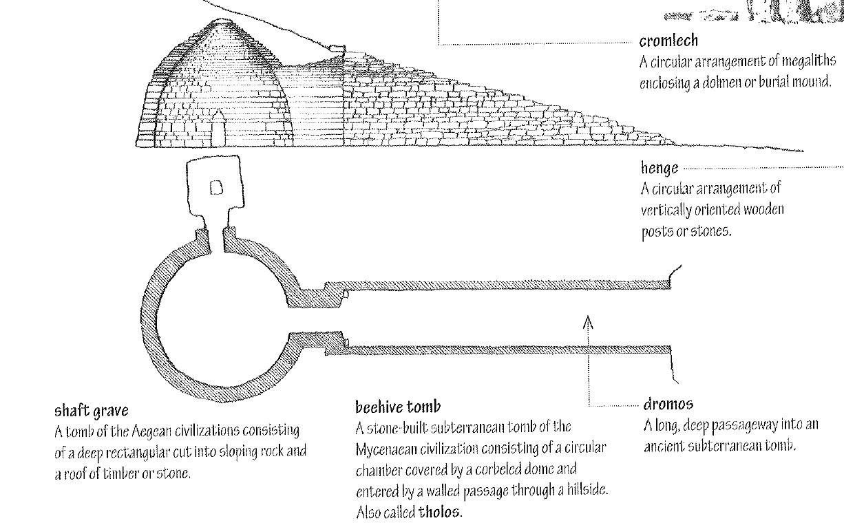A stone-built subterranean tomb of the Mycenaean civilization consisting of a circular chamber covered by a corbeled dome and centered by a walled passage through a hillside.
