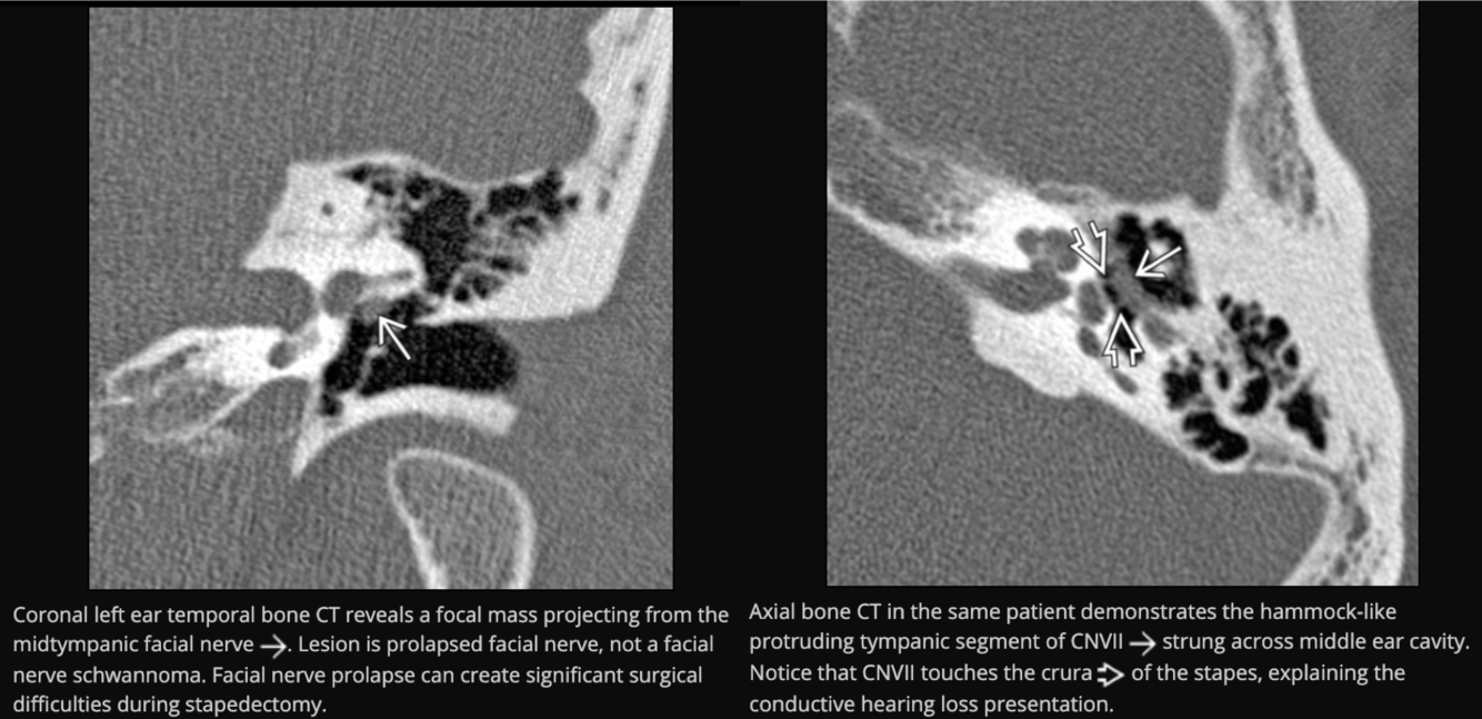 Prolapsing facial nerve (protruding intratemporal facial nerve)