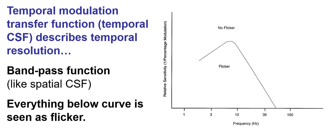 Periphery has higher temporal resolution than fovea even though more rods/less cones as Magno- cells predominate in periphery & cones in periphery process faster than foveal cones.