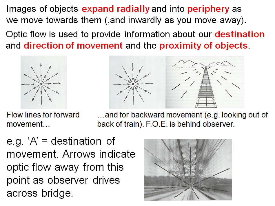 Using optic flow how can we determine whether we are moving towards or away from something?
