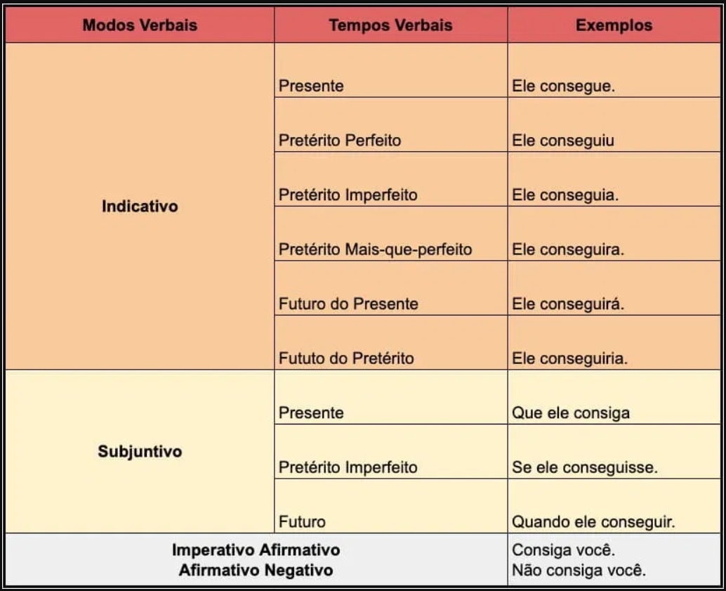 TABELA RESUMO DE TEMPOS E MODOS VERBAIS