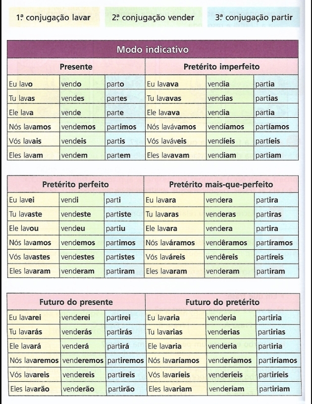 CONJUGAÇÃO DOS VERBOS: lavar, vender e partir.