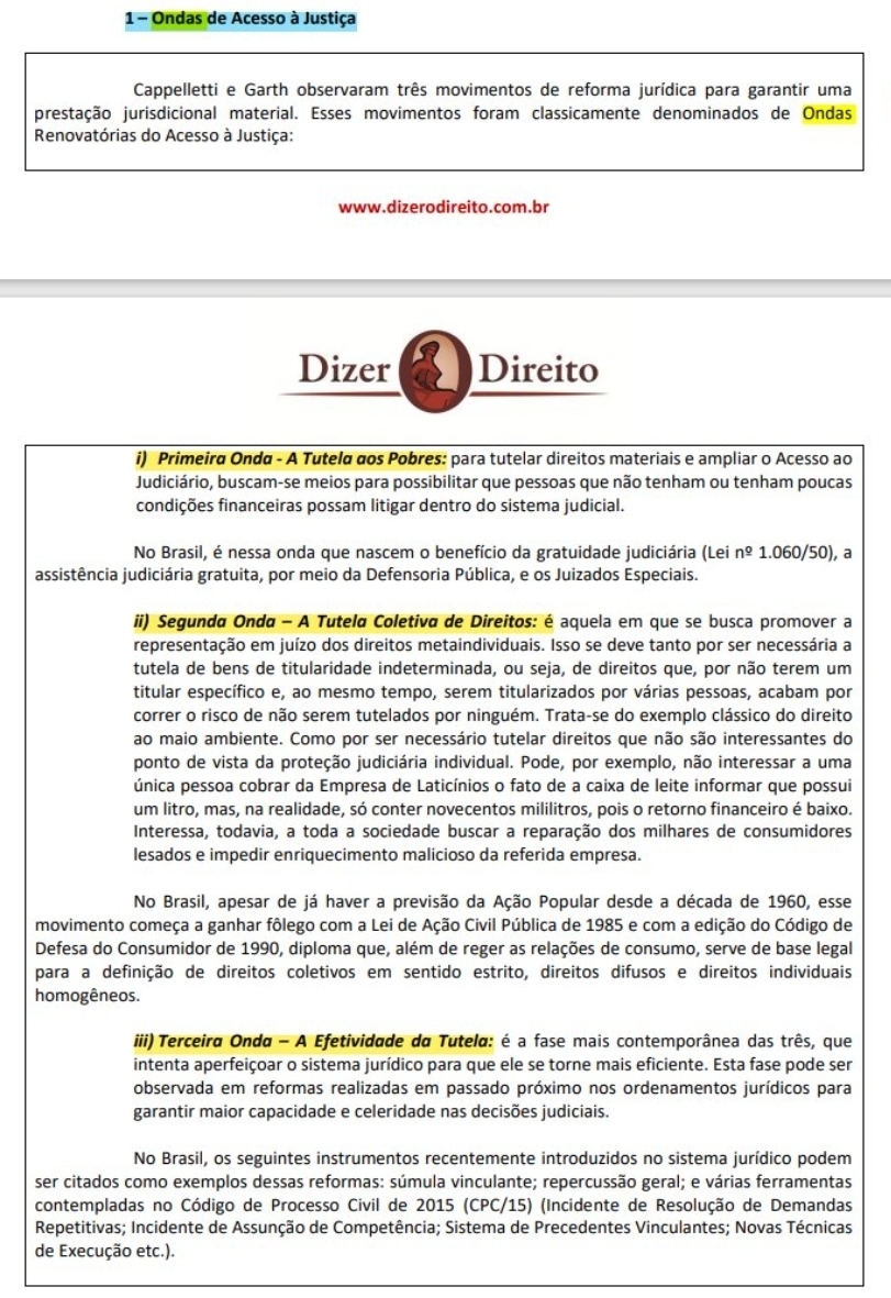 🐢 Mauro Cappelletti, no Projeto Florença, identificou três “ondas renovatórias” que representam fases de mudança para melhorar o acesso à Justiça, especialmente para os mais vulneráveis.