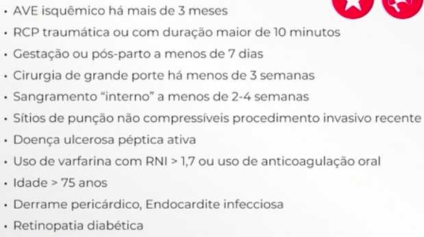 Contraindicações ao trombolítico no TEP