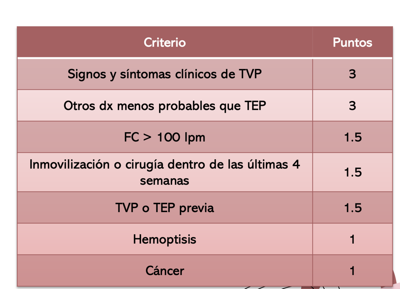 Factores de riesgo fuertes para TEP