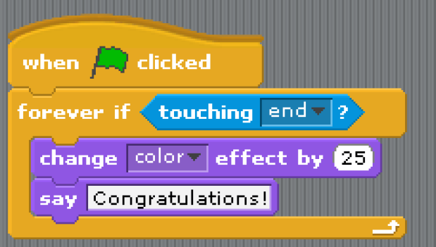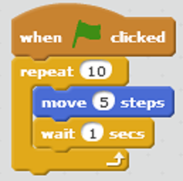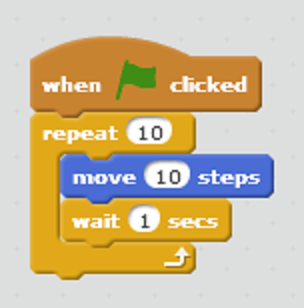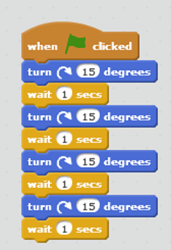 Add a control block to repeat (loop) “turn 15 degress” and “wait 1 second” blocks 4 times