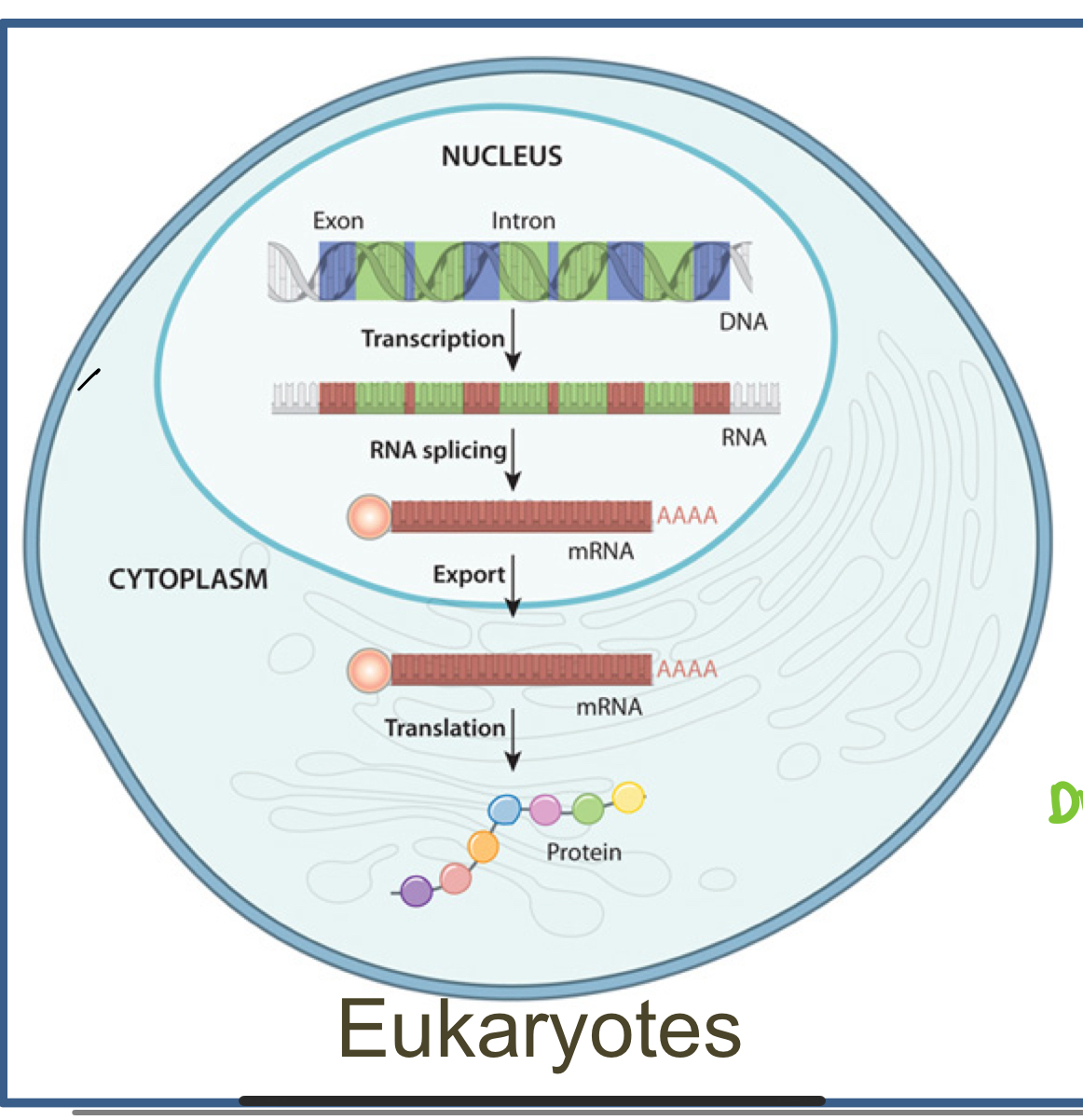 in Eukaryotes what does the central dogma process look like?
