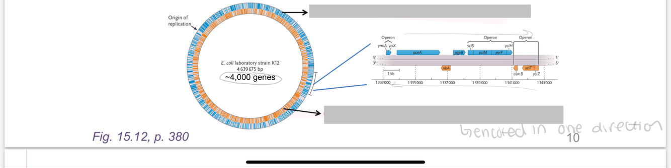 Transcription of a gene occurs off only …?