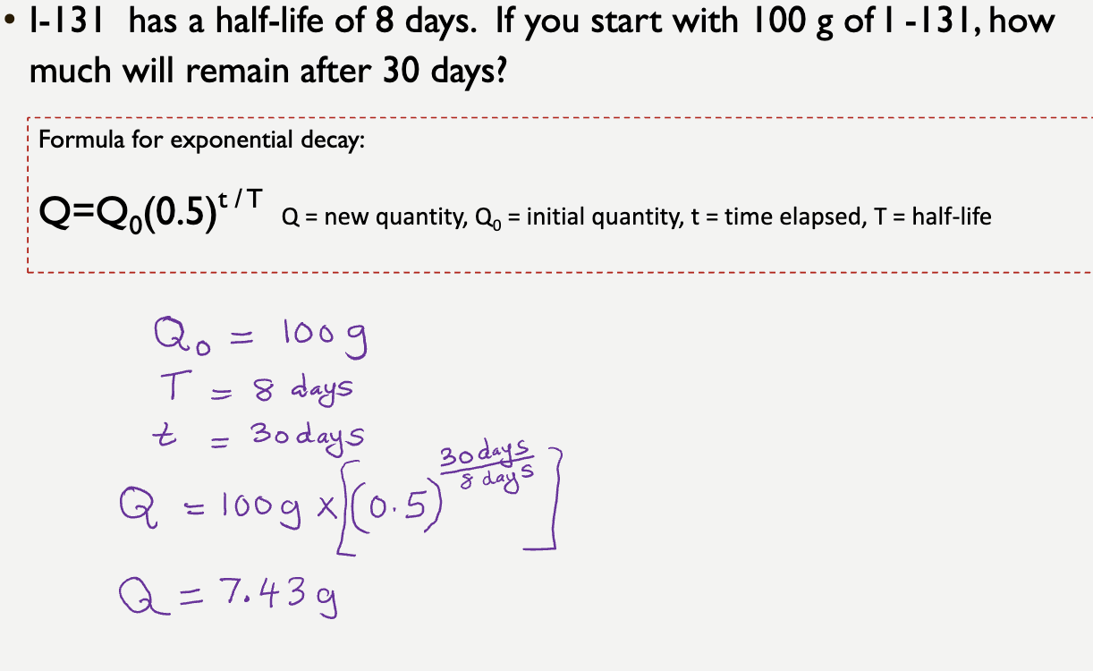 Long half life: slow decay overtime, exposed to radiation in low dosages for prolonged period–> increases risk, can acccumnulate ( more individuals exposed)