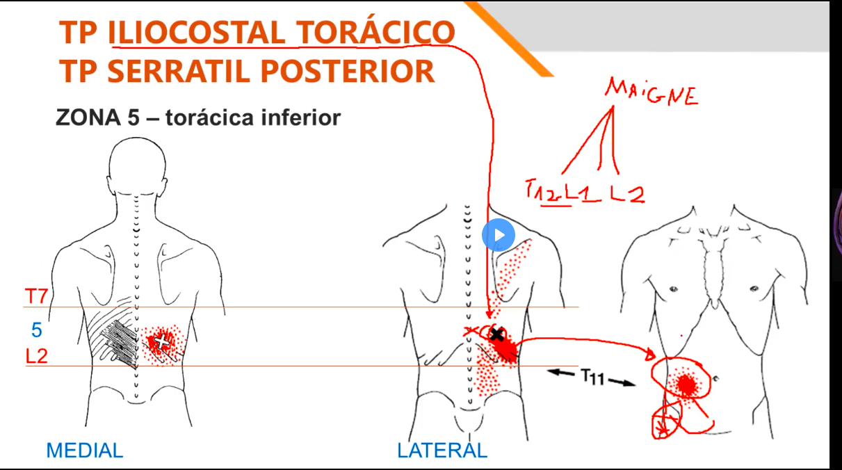 Causas de dor na zona 5 da coluna (torácica baixa)