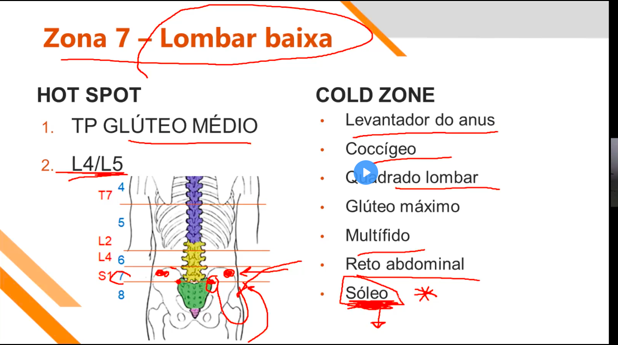 Causas de dor na zona 7 da coluna (lombar baixa)