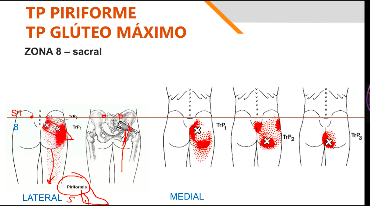 Locais dos pontos gatilhos do glúteo máximo e piriforme