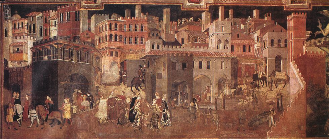 Peaceful City; Detail from the fresco, Allegory of Good Government: The Effects of Good Government in the City and the Country