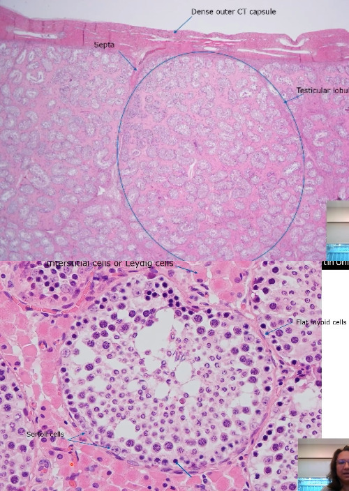 Flat cells on outside of seminiferous tubules are Myoid cell (smooth muscle cells)