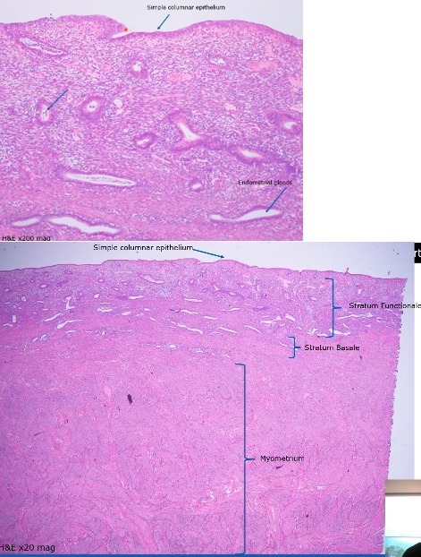 Stratum functionale contains endometrial glands (thickness depends on stage of menstrual cycle)