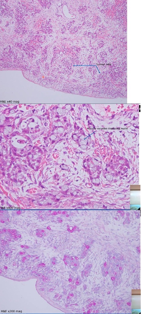 Tumour cells have eccentric nuclei due to mucin secreting vacuole