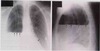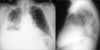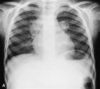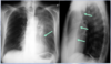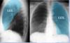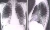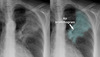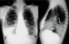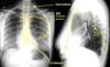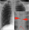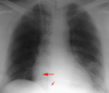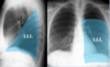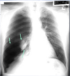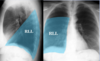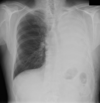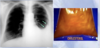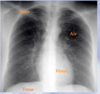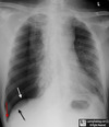 Free air: Instead of the air being contained inside the stomach to the unitlateral side of the diaphgram, air will be displaced bilaterally on both sides of the diaphragm.