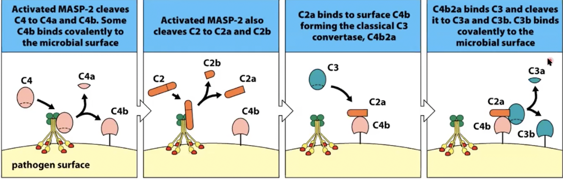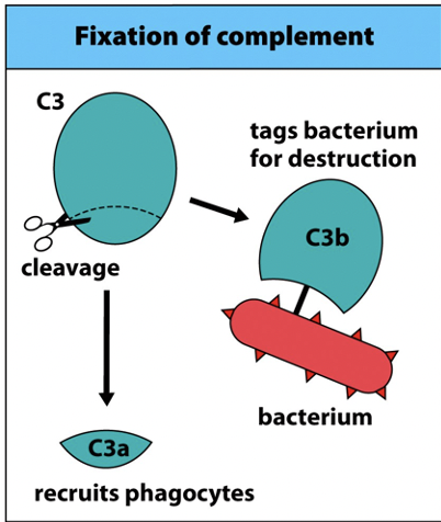 •Fixes C3b on the pathogen surface which will eventually trigger complement effector mechanisms