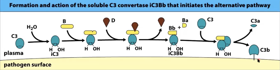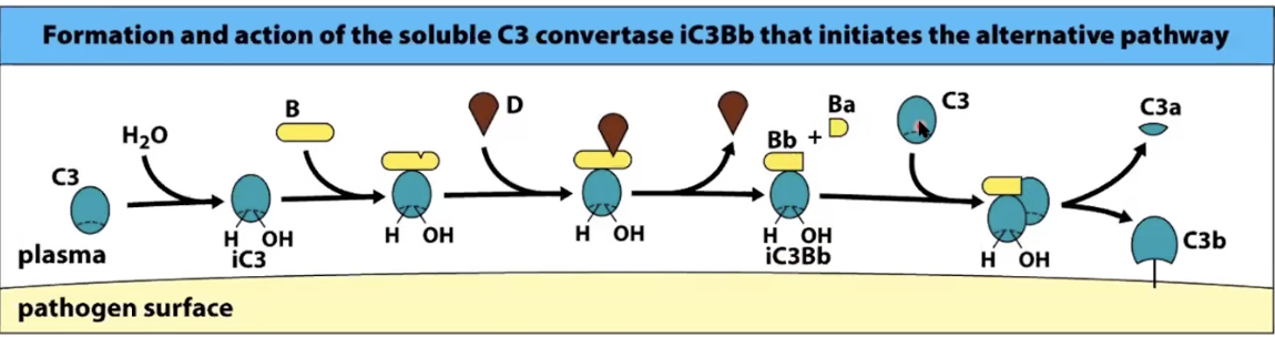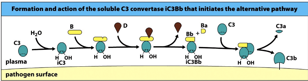 activated Factor D will bind and activate factor B → Bb and Ba creating iC3Bb