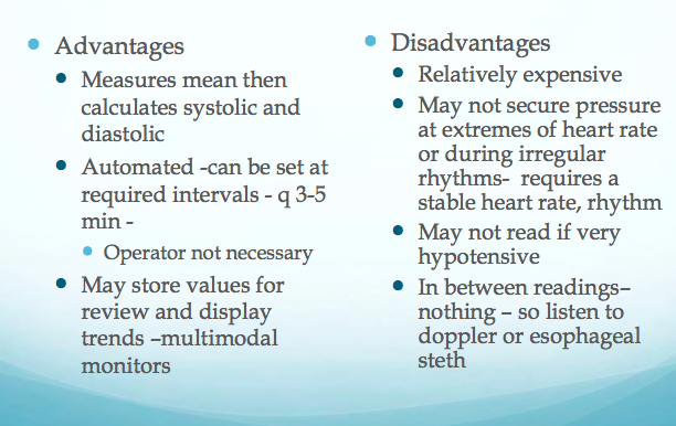 Automated inflation of cuff then deflation until machine senses flow (oscillations- blood flow ) under the cuff