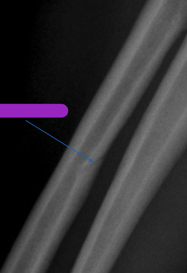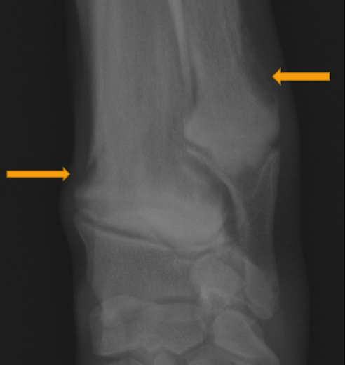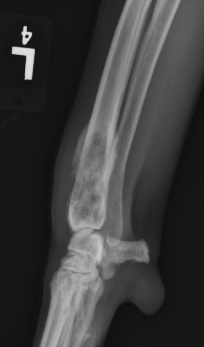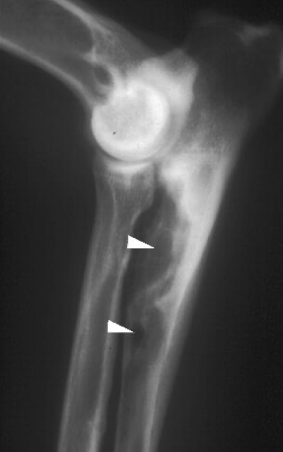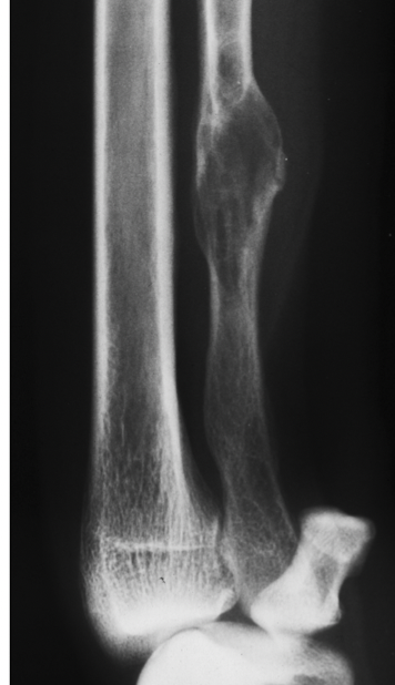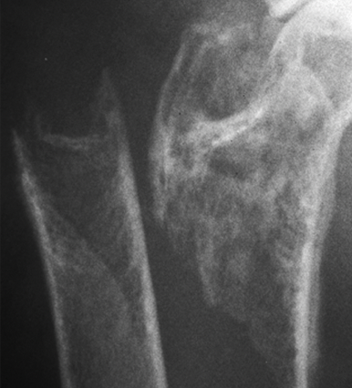 has geographic osteolysis- cyst but normal bone is clear and close by