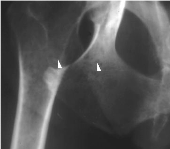 Irregular, heterogeneous, interrupted intra- or peri-articular bone production