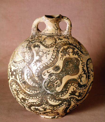 Significance: form influences the content, octopus engulfs the roundness, very informal and relaxed, reflects the life of Cretans near the ocean