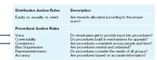 Procedural Justice – fairness of the processes that lead to the decisions about employment outcomes